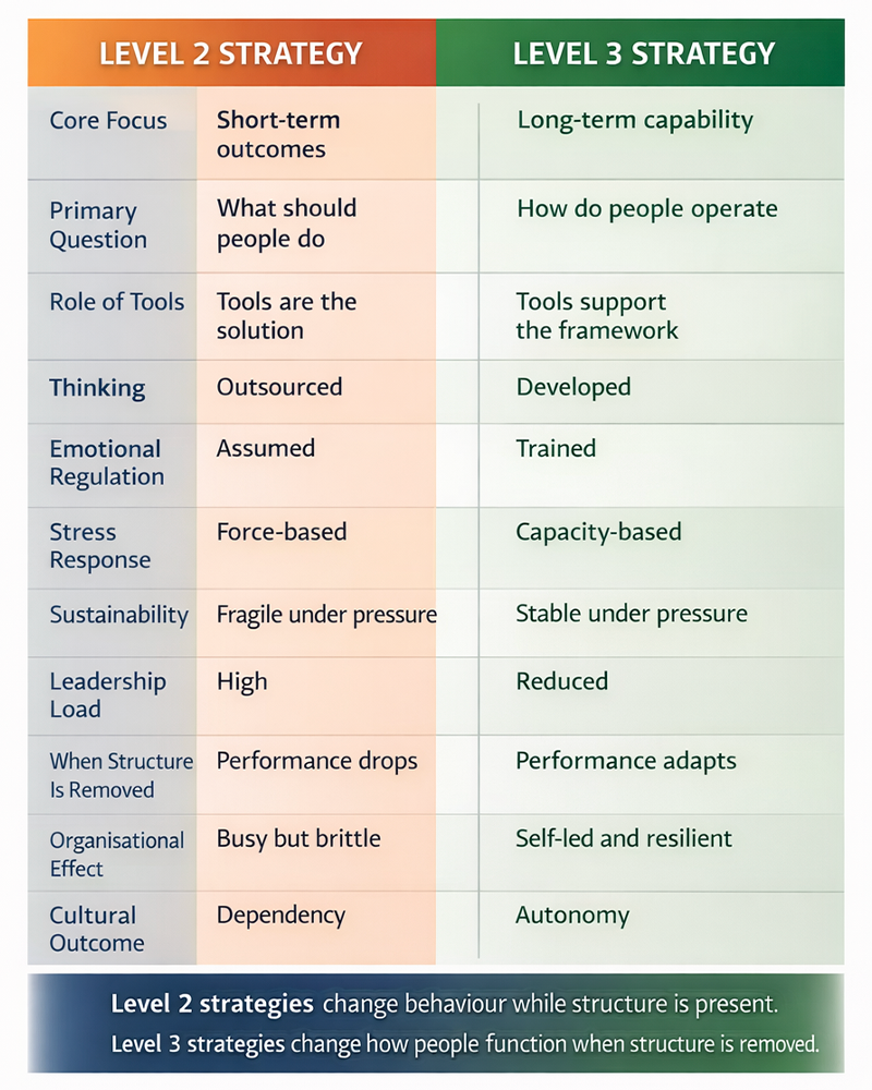 They fail because they use Level 2 tools in isolation, without the internal capacity required to sustain them.